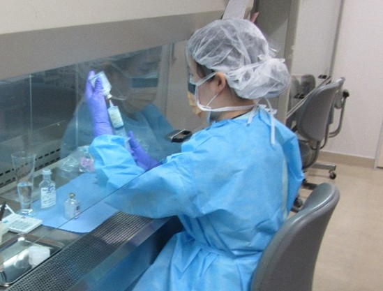 薬剤師は院内の治験に携わり、治験が問題なく遂行できるように、主に治験薬の管理と調剤をしています。